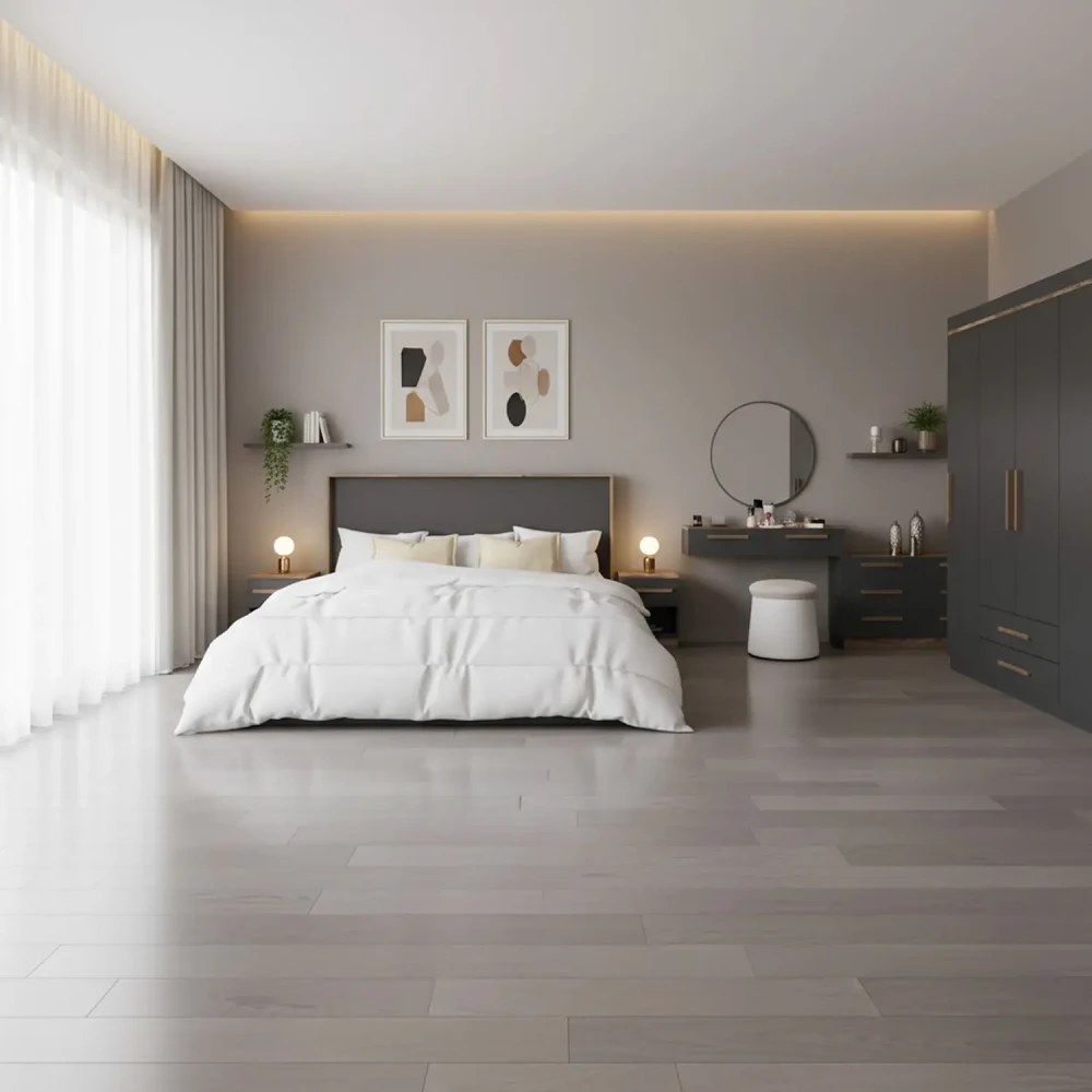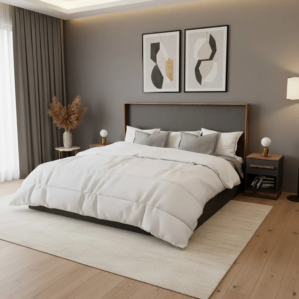 غرفة نوم كاملة مودرن لون رمادي مع بني
