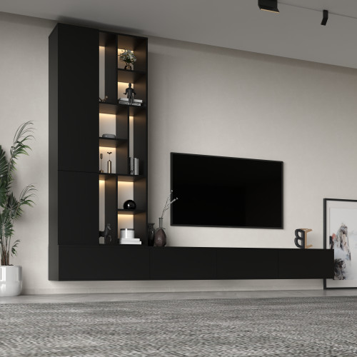 ✨ إذا كنت ترغب في إضافة لمسة عصرية 🖤 إلى غرفة المعيشة، فهذه الوحدة هي الاختيار الأمثل.فهي تجمع بين التصميم الحديث العملي والمساحات الذكية المخصصة للتخزين والعرض.