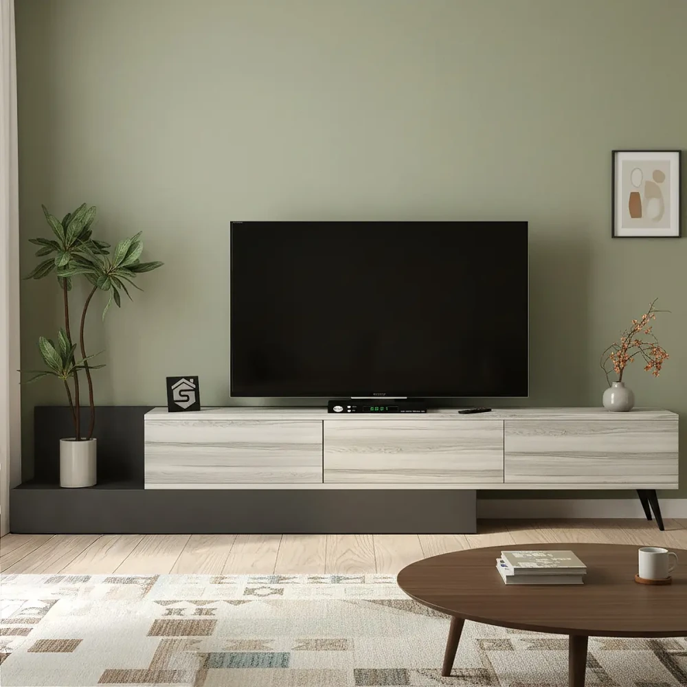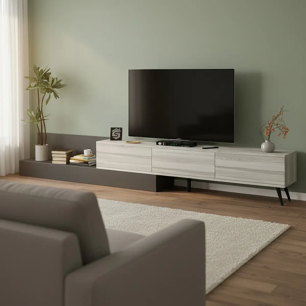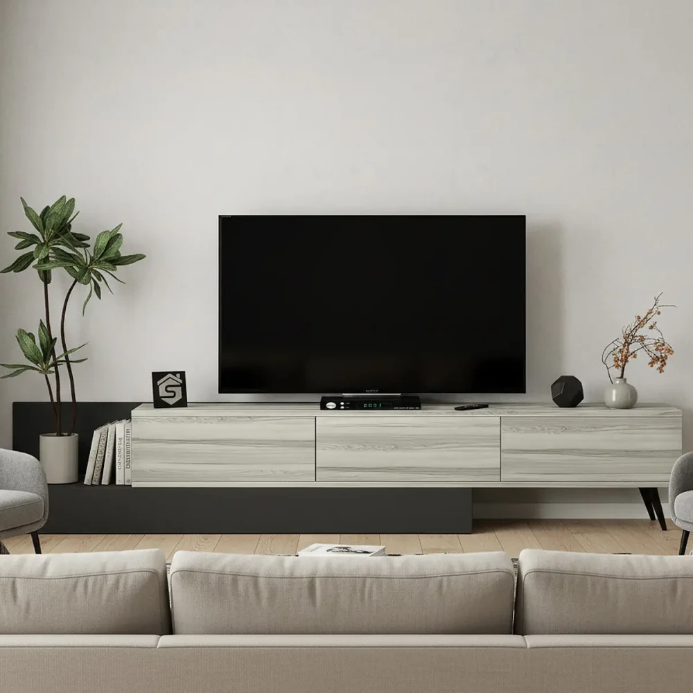 طاولة شاشة رمادي درجتين، تعتبر هذه الطاولة واحدة ضمن مجموعة طاولات تلفزيون بلازما تصميم تركي مميز وصناعة سعودية ، تم تصنيعها بعناية داخل السعودية، وتم استخدام أجود انواع الخشب التيلندى الذي يتم استخدامه في تصنيع طاولات تلفزيون مميزة وعالية الجودة.