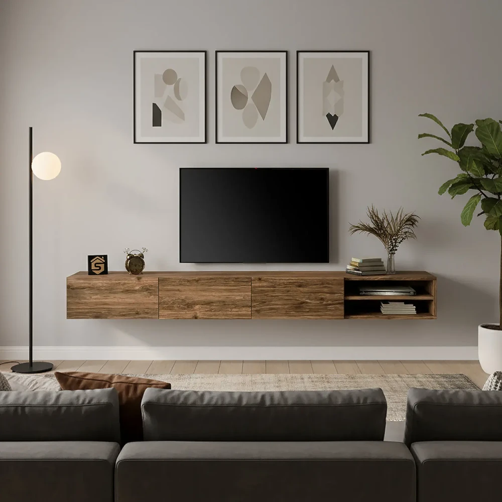 طاولة تلفزيون معلقة لون بني، فخر الصناعة السعودية بتصميم تركي عالية الجودة ،صنعت في المملكة العربية السعودية.