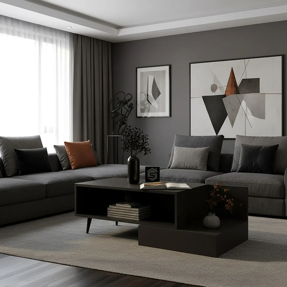 استمتع بتجربة تجمع بين الجمال والاستخدام العملي مع طاولة وسط عصرية قابلة للتحكم في عرضها من من 90 سم الى 130 سم. تمتاز هذه الطاولة بتصميم عصري وحديث يتناغم مع اغلب الديكورات، وتأتي بلون أسود يضيف لمسة من التميز والأناقة.
