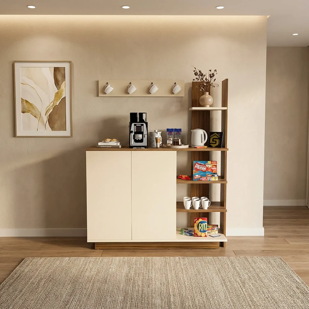 طقم طاولات بيج مع بني، مع رفوف فخر الصناعة السعودية بتصميم تركي عالية الجودة، صنعت في المملكة العربية السعودية.