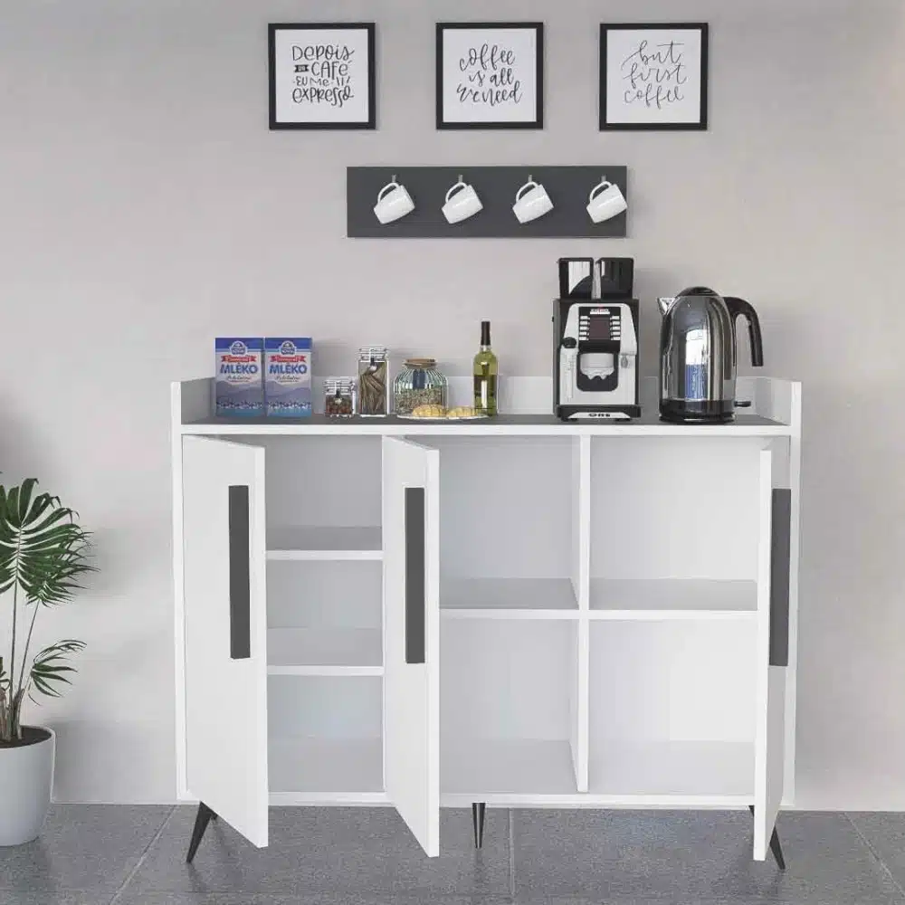 - بعرض 120 سم، يتألف من 3 درف مغلقة لتخزين أجهزة التحضير وأدوات المشروبات.