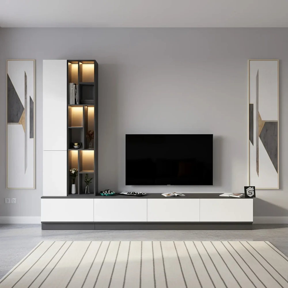 أضف لمسة من التميز والرقي إلى منزلك مع هذا الطقم العصري بألوان الأبيض والرمادي الهادئة. صُمم ليجمع بين الأناقة والعملية، ويوفر حلول تخزين ذكية ومساحات متعددة الاستخدامات، مما يجعله خيارًا مثاليًا يلبي احتياجاتك اليومية ويناسب مختلف أنماط الديكور.