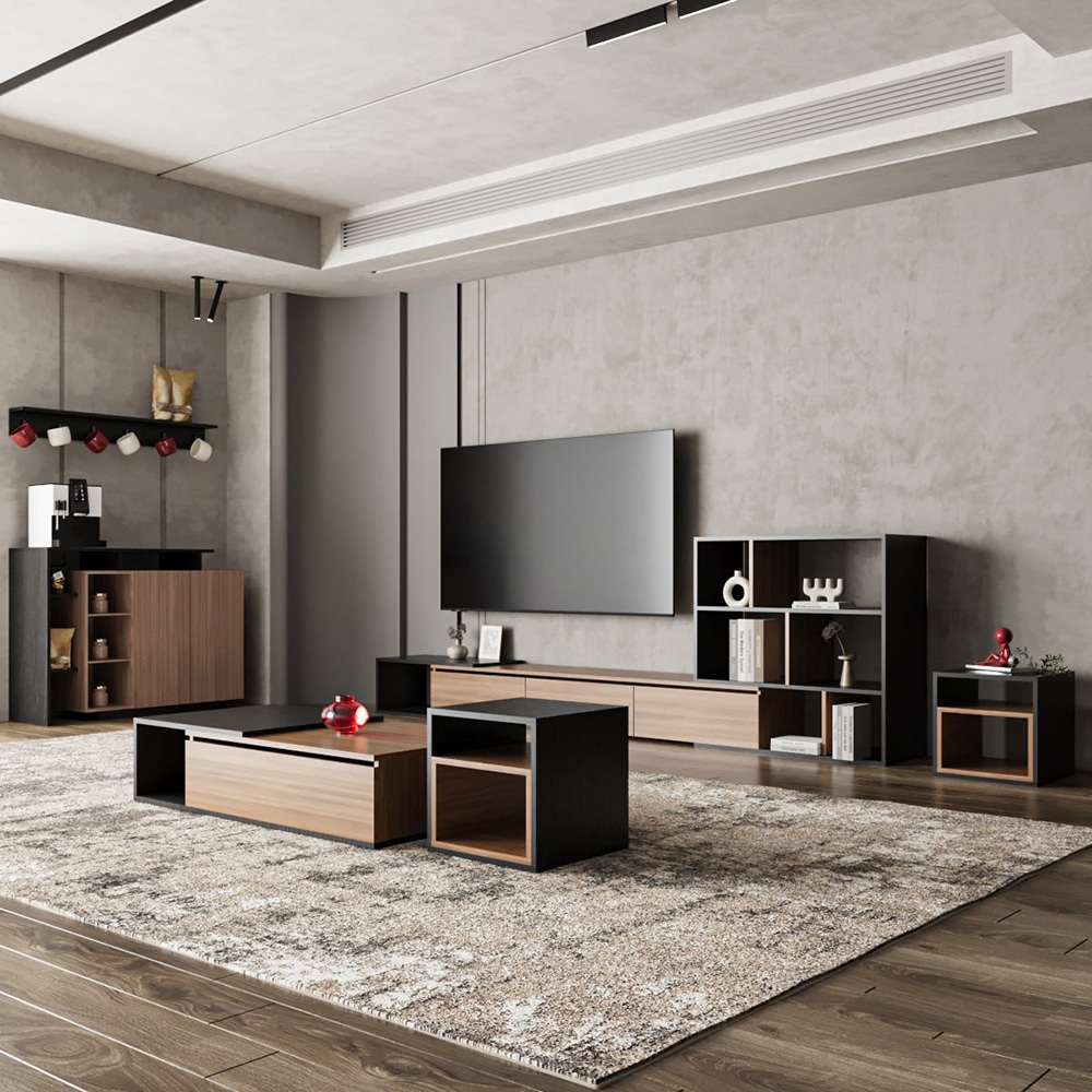- تصميم عصري وجمالي: يمتزج اللونان البني والأسود ليضفيا جواً من الفخامة والحداثة على ديكور منزلك. بالإضافة إلى ذلك، تصميم المكتبة يوفر مزيجاً مثالياً بين العملية والجمال.
