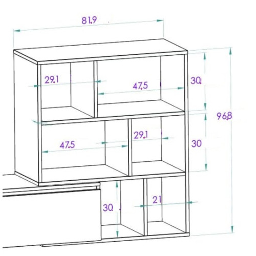 - مساحة تخزين واسعة: تحتوي المكتبة على ستة أرفف جانبية، ثلاثة درف، ورف جانبي، مما يوفر لك مساحة كافية لتخزين وتنظيم الكتب، الأجهزة الإلكترونية، والديكورات بشكل جميل ومرتب. علاوة على ذلك، الرف الجانبي يضيف لمسة جمالية إلى التصميم.