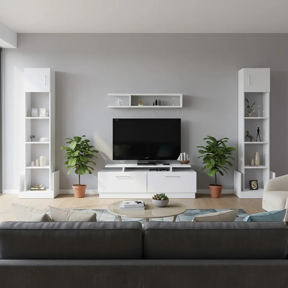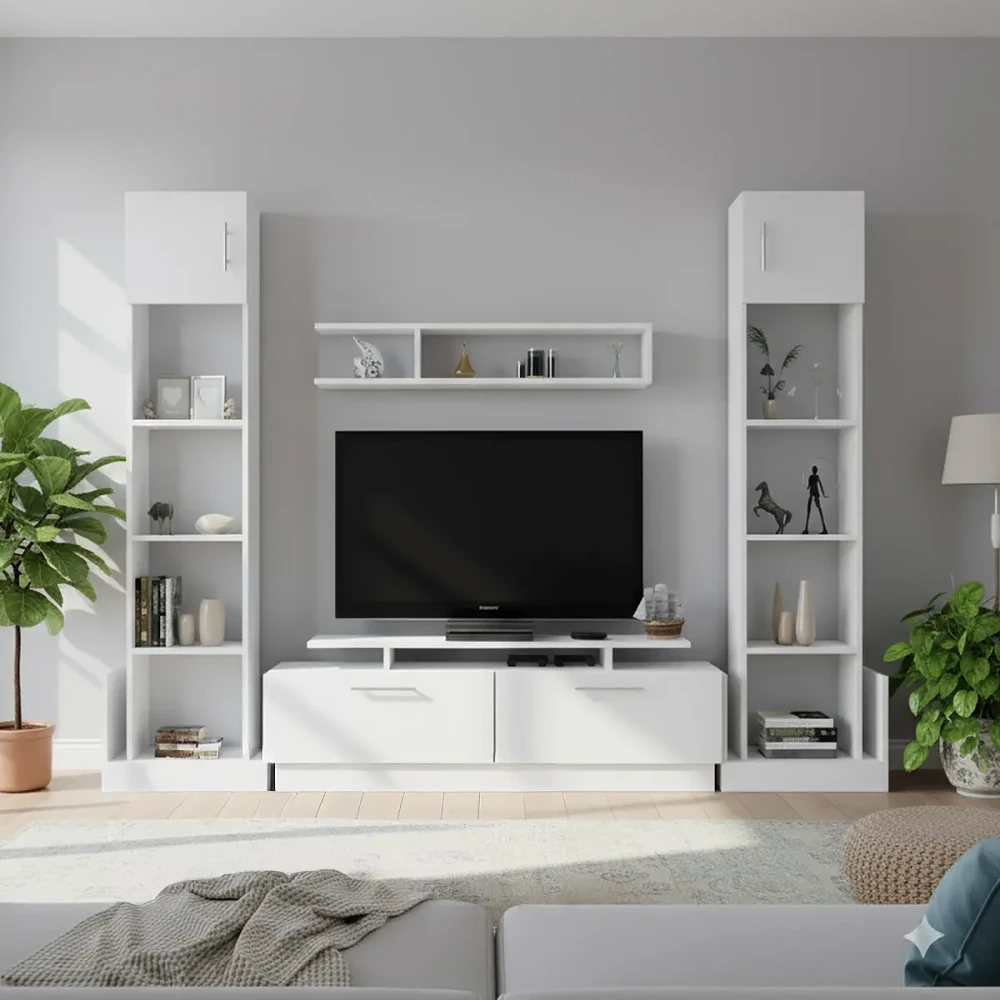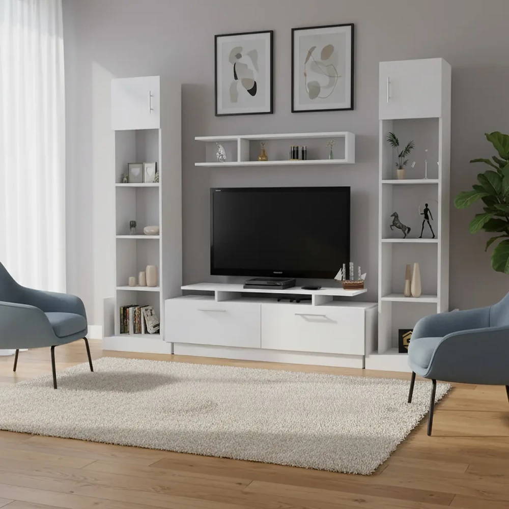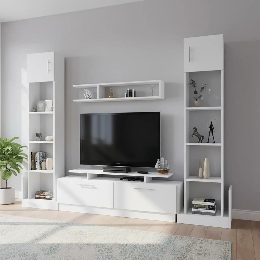 مكتبة تلفزيون كبيرة لون أبيض، تتميز بالتصميم والذوق التركى الراقى، تعرف على المقاسات وكل ما يخص المنتج في الوصف المفصل في الاسفل .اضغط هنا لوصف المنتج
